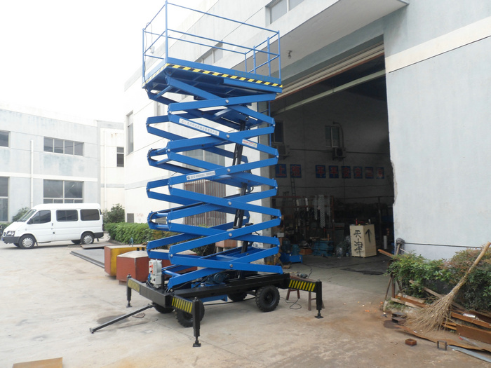 剪叉式高空作業(yè)臺是用途廣泛的高空作業(yè)專用設(shè)備。它的剪叉式機械結(jié)構(gòu),使升降臺起升后有較高的穩(wěn)定性,